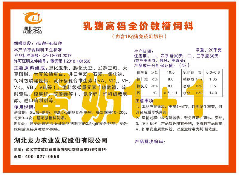 湖北龍力農業發(fā)展股份有限公司坐落于武漢市黃陂區前川街向陽街群順三里298號附1號。公司成立于2014年6月,公司自成立以來把“創(chuàng)全球最大養豬綜合服務”為企業愿景。致力于打造教保料品牌”作為公司發(fā)展的明確目標。公司一直致力于豬營養的研究和開發(fā),積極與國內外高校和科研機構合作,推廣養豬技術、動物營養新概念,向世界農牧企業學習與合作。公司采用國內先進的生產工藝,選擇高精度電子配料秤,高均勻度、無殘留混合機等先進設備....